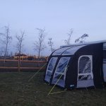 Horší prijezd k pozemku, sice asfaltová cesta, ale užší. Vjezd na pozemek uzkymi vraty,, pozemek mírně do kopce. Po dohodě s majitelem stani před vraty u cesty, během víkendu po ní prošli dva lidé. Silnice přes řeku velmi frekventovaná, ale výhled na skály to vylepšil. Okolí dokonale. Majitel v pohodě.