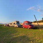 Klidné místo i při více posádkách, možnost zahrát si fotbal, basket (míč s sebou), suché čisté pisoáry a WC, v blízkosti spousty památek.